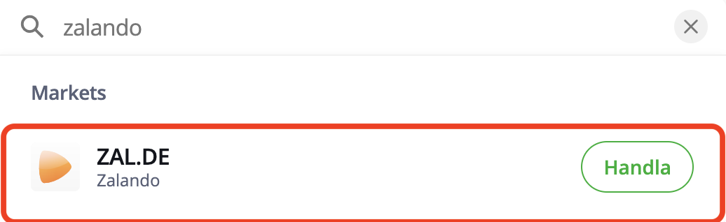 Har du pengar på ditt konto? Då klickar vi på sökknappen, söker efter Zalando aktie.