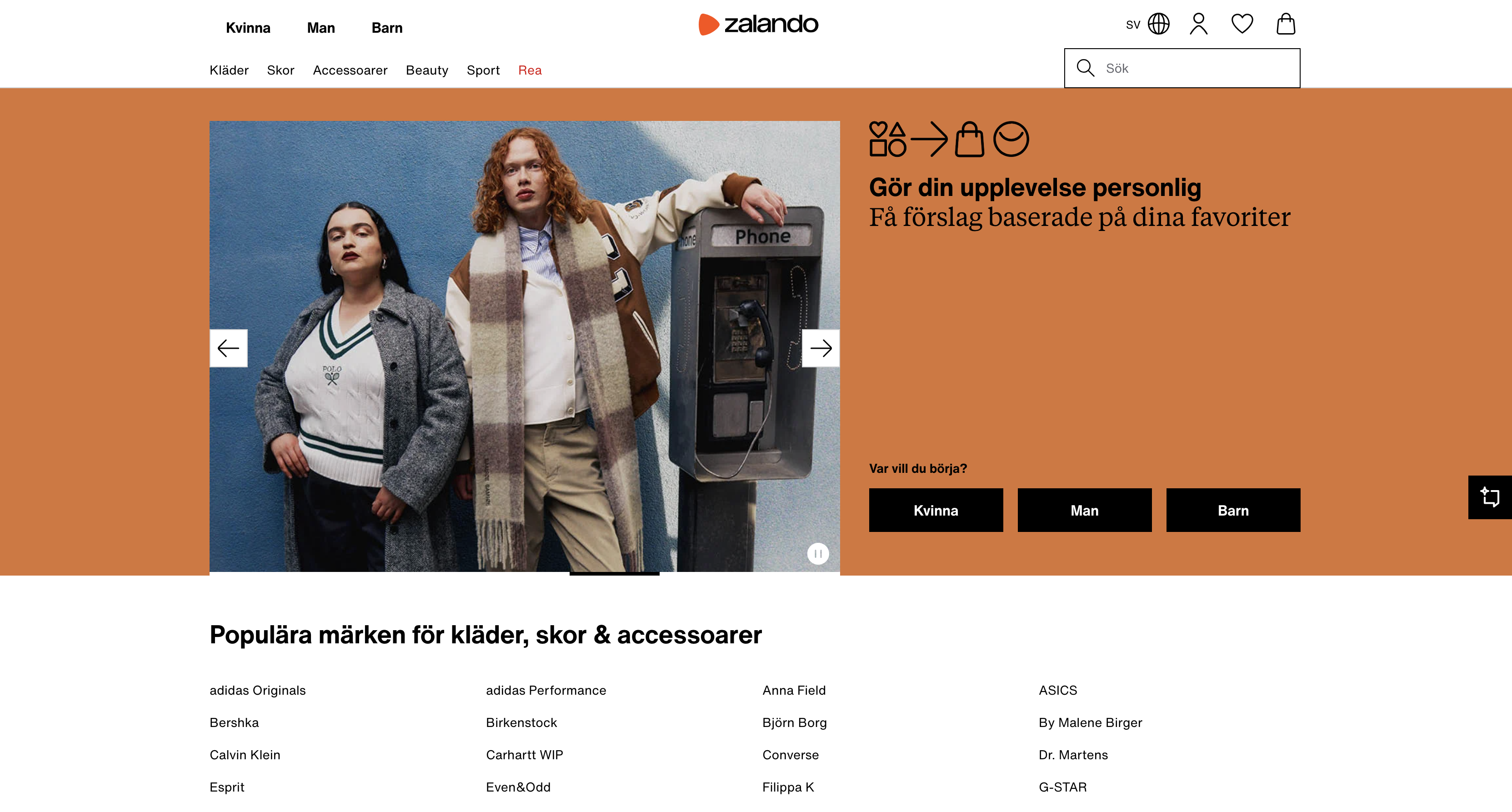 Zalando är en av Europas främsta aktörer inom e-handel för mode och livsstil. På deras plattform kan man köpa allt från kläder och skor till accessoarer och skönhetsprodukter från över 6 000 varumärken. Sortimentet riktar sig till både män, kvinnor och barn. Läs mer i kapitel 2.